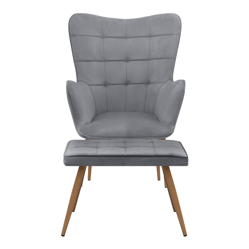 Πολυθρόνα – Μπερζέρα με υποπόδιο Lily Megapap γκρι βελούδο – μεταλλικό πόδι χρώμα φυσικό 70x62x98εκ.
