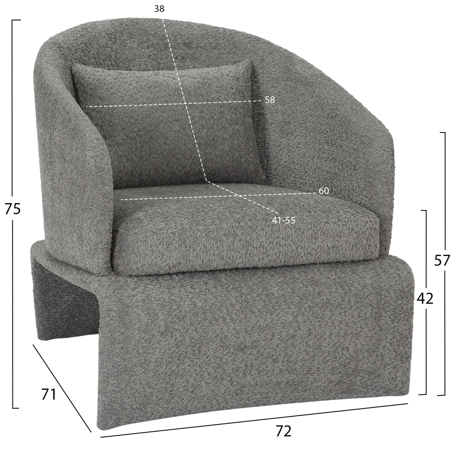 Η πολυθρόνα εσωτερικού χώρου BEVY σε ΓΚΡΙ χρώμα είναι μοντέρνα και πανέμορφη. Το χαρακτηριστικό που κάνει αυτή την πολυθρόνα να ξεχωρίζει είναι ότι το κάθισμα με την ημικυκλική πλάτη και τα αναπαυτικά μαξιλάρια στηρίζεται σε μια βάση όμοιας αισθητικής. Μια πολυθρόνα που είναι σίγουρο ότι δεν θα περάσει απαρατήρητη.