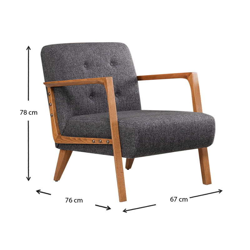 Πολυθρόνα Kemer Megapap υφασμάτινη χρώμα ανθρακί 67x76x78εκ.
