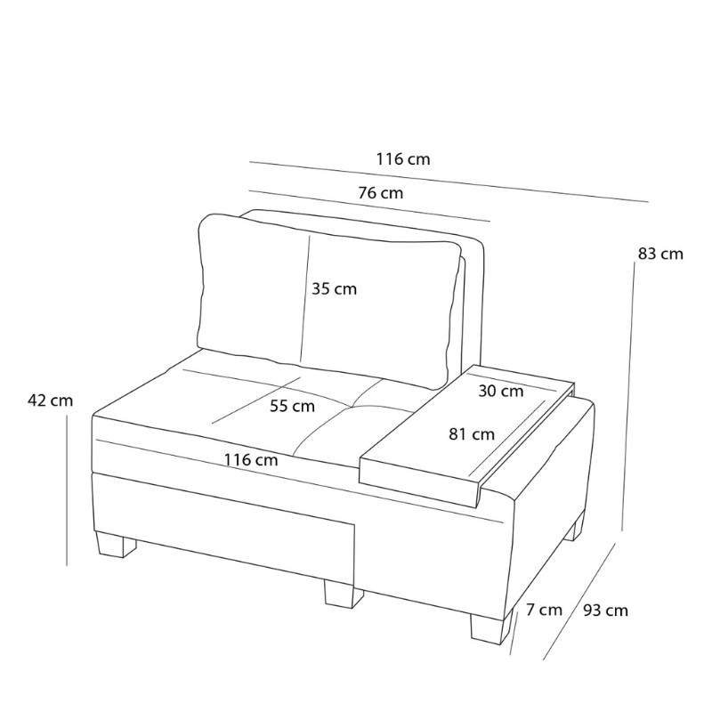 - Διαστάσεις: Μήκος 116 x Βάθος 93 x Ύψος 83 εκ.