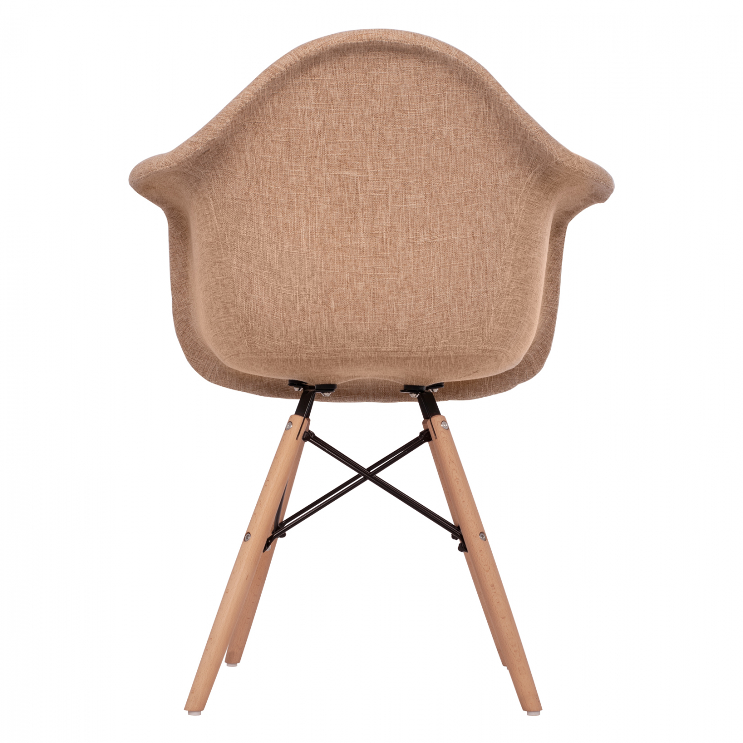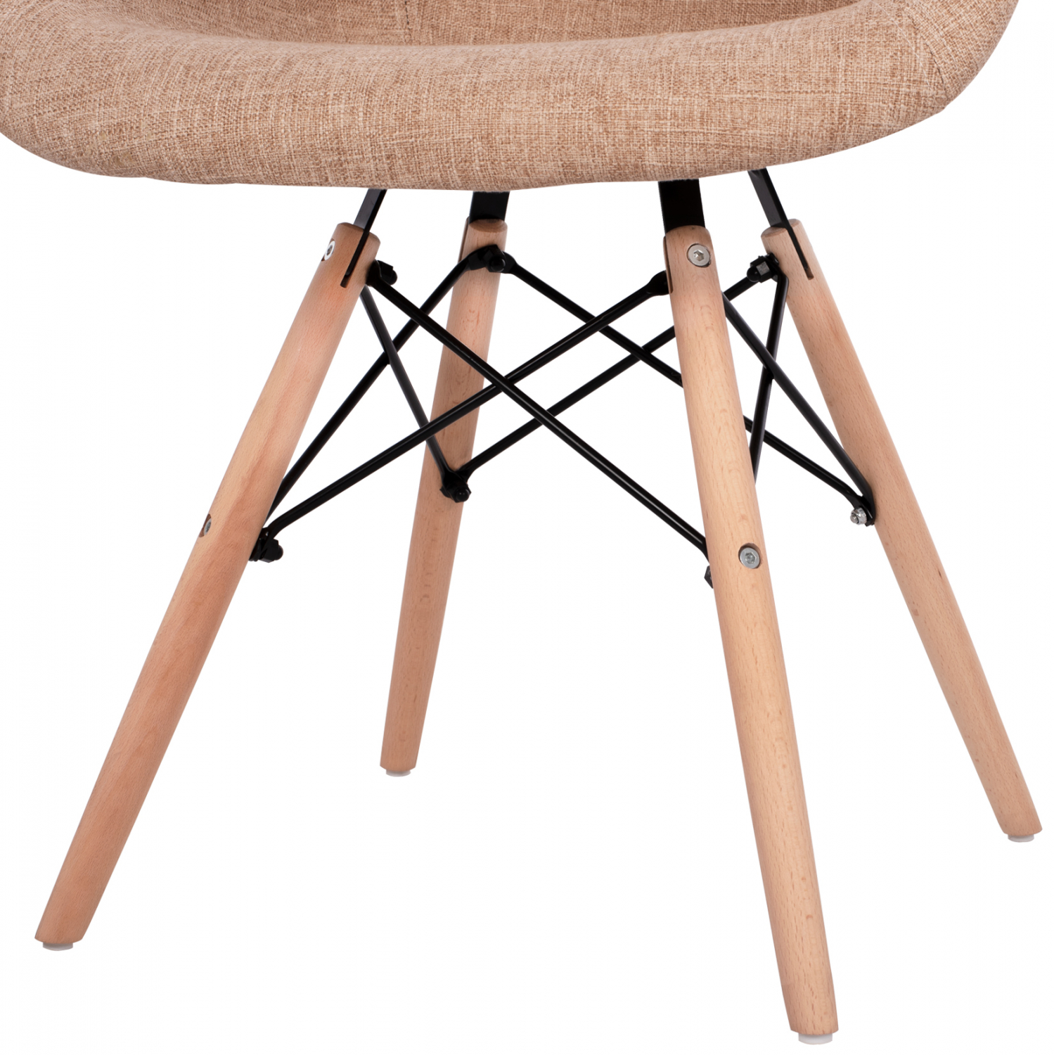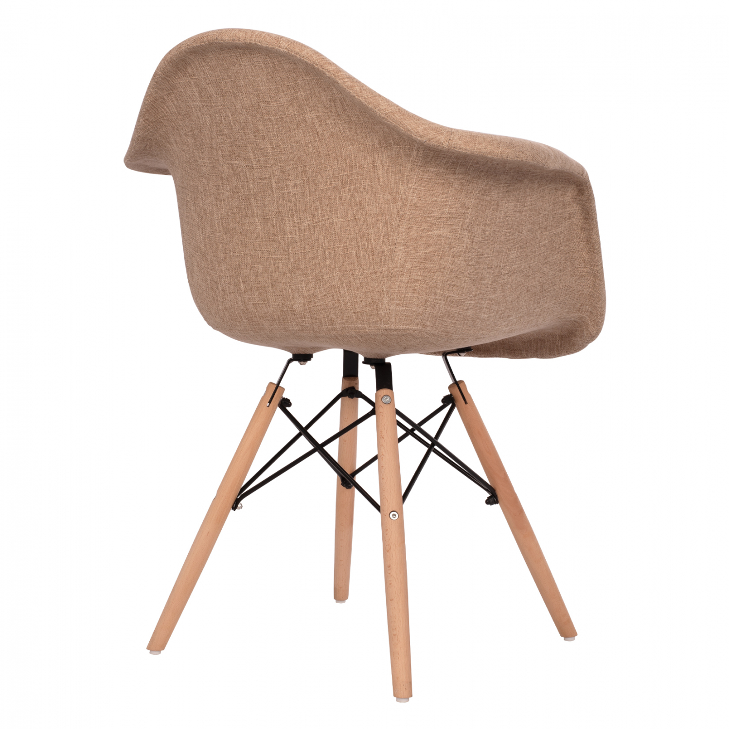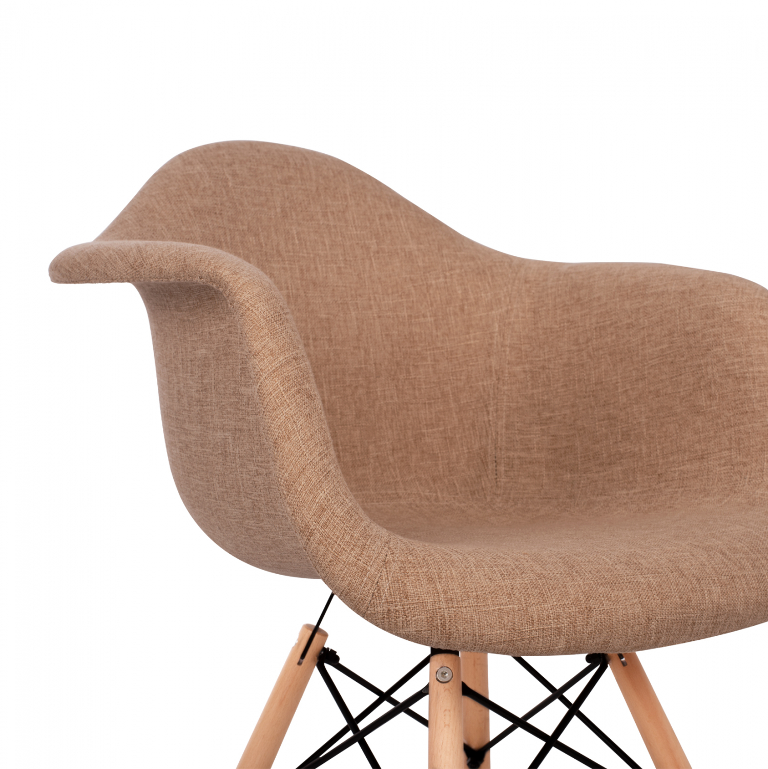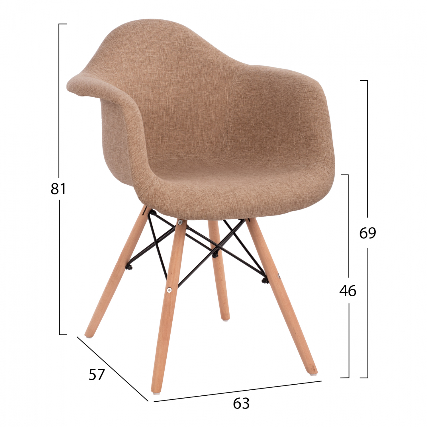 Μοντέρνα πολυθρόνα με μπεζ ύφασμα και φυσικά πόδια οξιάς. Ταιριάζει με όλα σχεδόν τα στιλ και είναι μια καρέκλα σταθμός στην ιστορία του design.