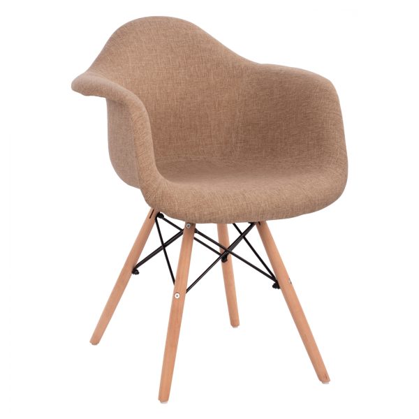 Μοντέρνα πολυθρόνα με γκρι ύφασμα και φυσικά πόδια οξιάς. Ταιριάζει με όλα σχεδόν τα στιλ και είναι μια καρέκλα σταθμός στην ιστορία του design.