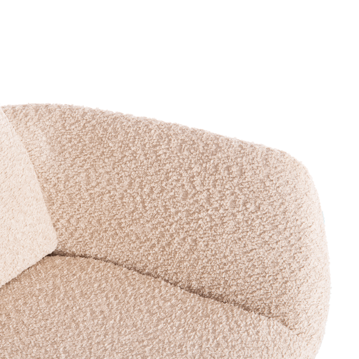 Ολόκληρη η επένδυση έχει γίνει με εξαιρετικής ποιότητας ΜΠΟΥΚΛΕ ύφασμα. Μπουκλέ λέγεται οποιοδήποτε ύφασμα που έχει κόμπο-μπούκλα στην ύφανσή του. Κατασκευάζεται από σχεδόν όλες τις πρώτες ύλες (αν και συνήθως είναι συνθετικό) με ειδικές κλωστές με κόμπους ή πολύ στριμμένα νήματα, έτσι ώστε να έχει σγουρή επιφάνεια. Δεν τσαλακώνει και μπορεί να είναι μονόχρωμο, μελανζέ ,καρώ ή τουιντ.