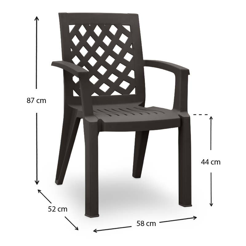 Η πολυθρόνα πολυπροπυλενίου Kira είναι κατασκευασμένη από πολυπροπυλένιο σε καφέ απόχρωση. Ιδανική επιλογή για το μπαλκόνι, τον κήπο σας ή και για επαγγελματική χρήση.