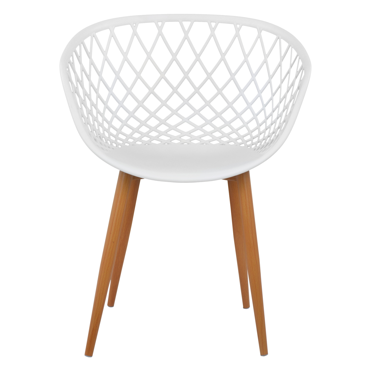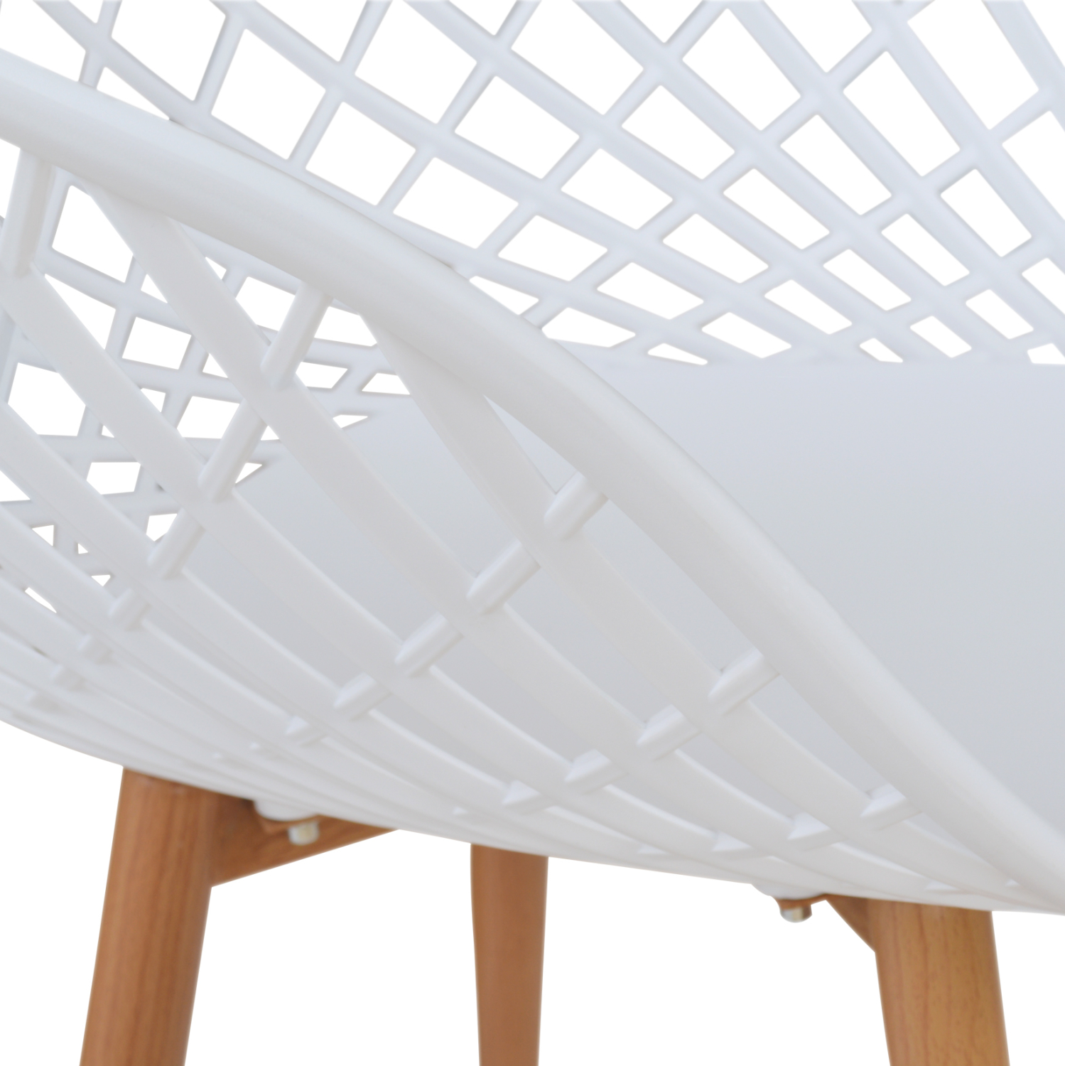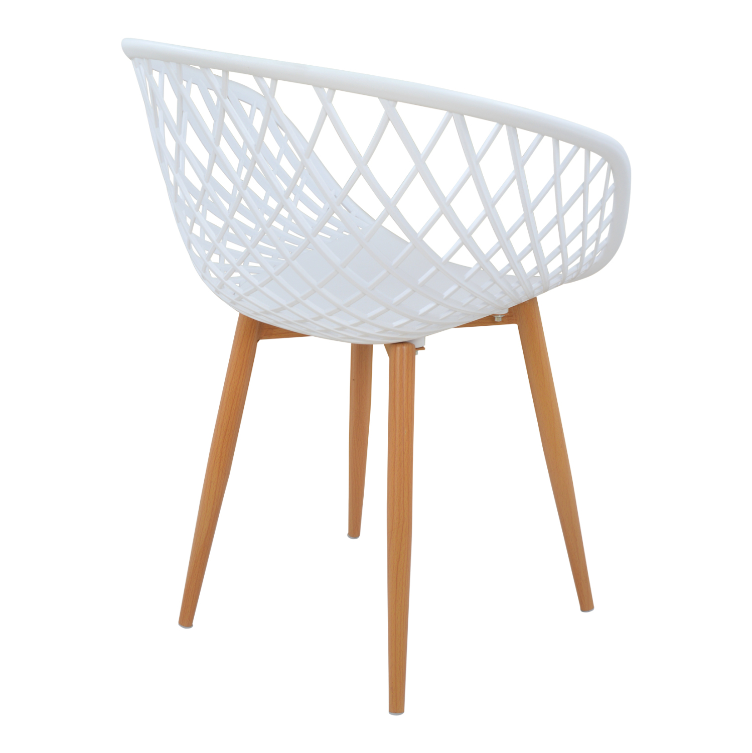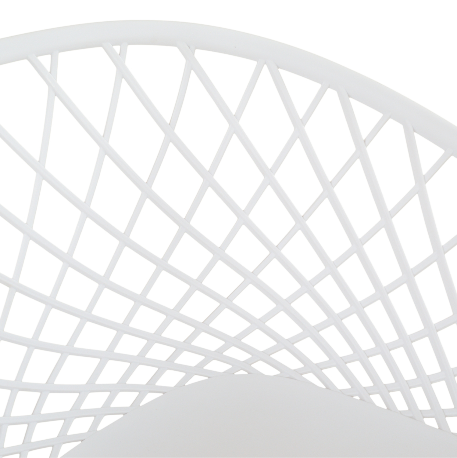 ενώ το κάθισμα της καρέκλας είναι από πολυπροπιλένιο σε λευκή απόχρωση.