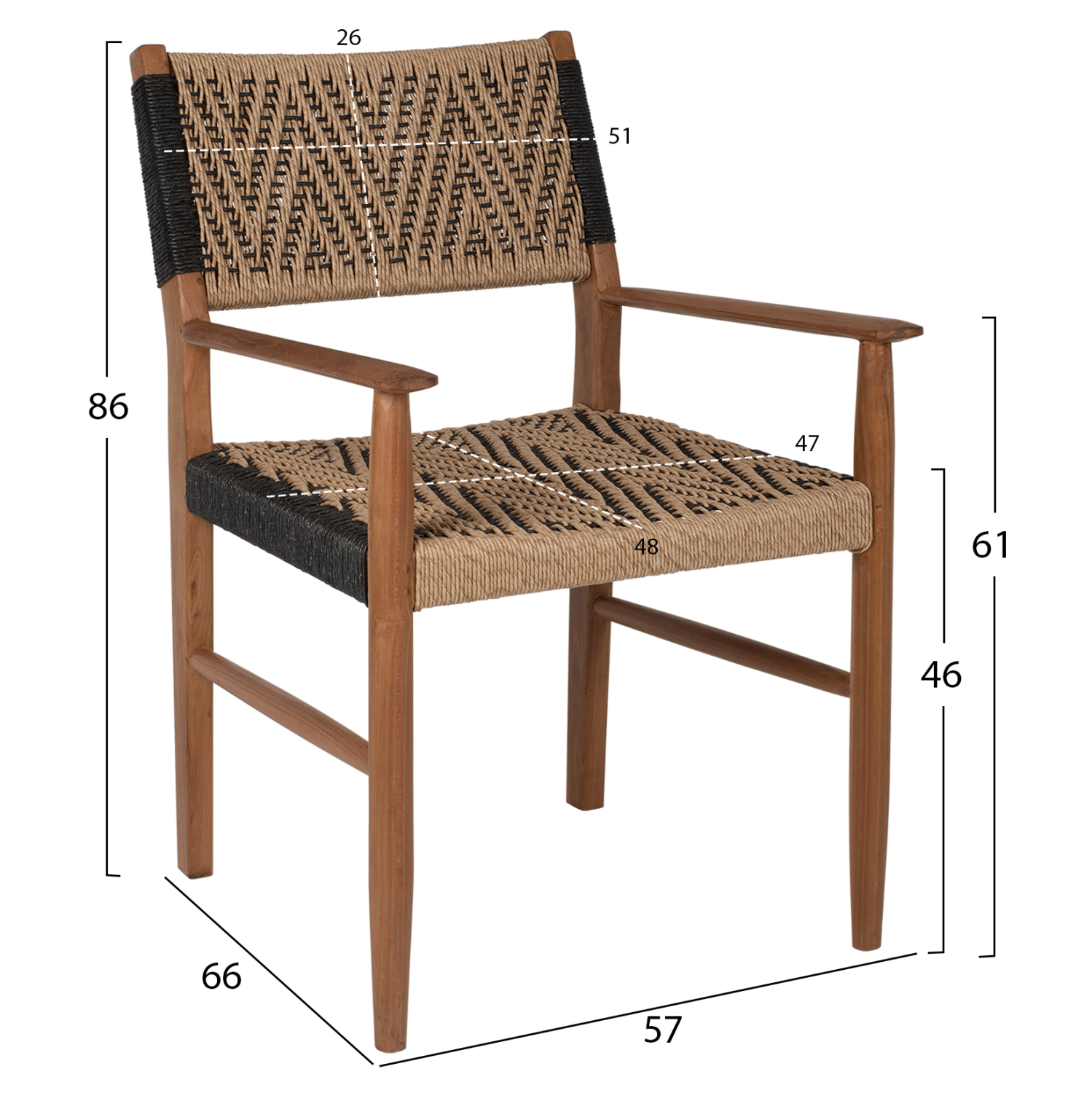 Το κάθισμα και η πλάτη αποτελούνται από συνθετικό σχοινί σε πλέξη.