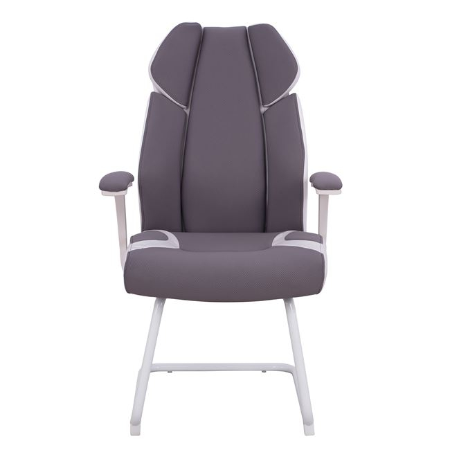 Βάση από αλουμινίο σε λευκή απόχρωση , κάθισμα και πλάτη από ύφασμα μεγάλης αντοχής σε λευκό – γκρι χρώμα και μπράτσα απο πολυπροπυλένιο σε λευκή απόχρωση.