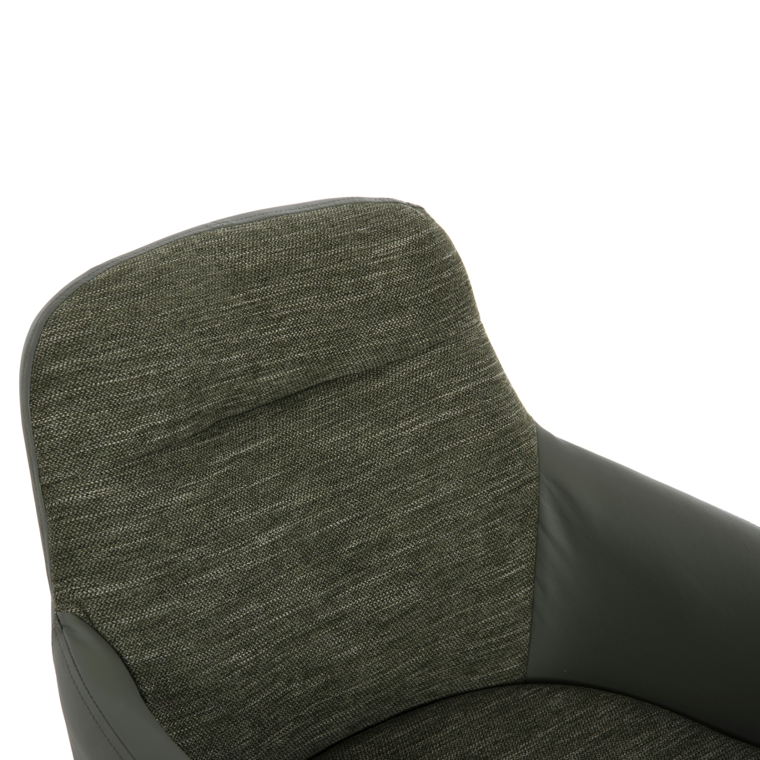 Πέρα από το πανέμορφο ύφασμα στην πλάτη και το κάθισμα, το PU συνθετικό δέρμα στα μπράτσα είναι ένα υλικό που έχει υφή λινού υφάσματος και είναι η εξέλιξη της δερματίνης αλλά με κύριο χαρακτηριστικό ότι δεν ξεχωρίζει εύκολα στο μάτι από το αληθινό δέρμα.