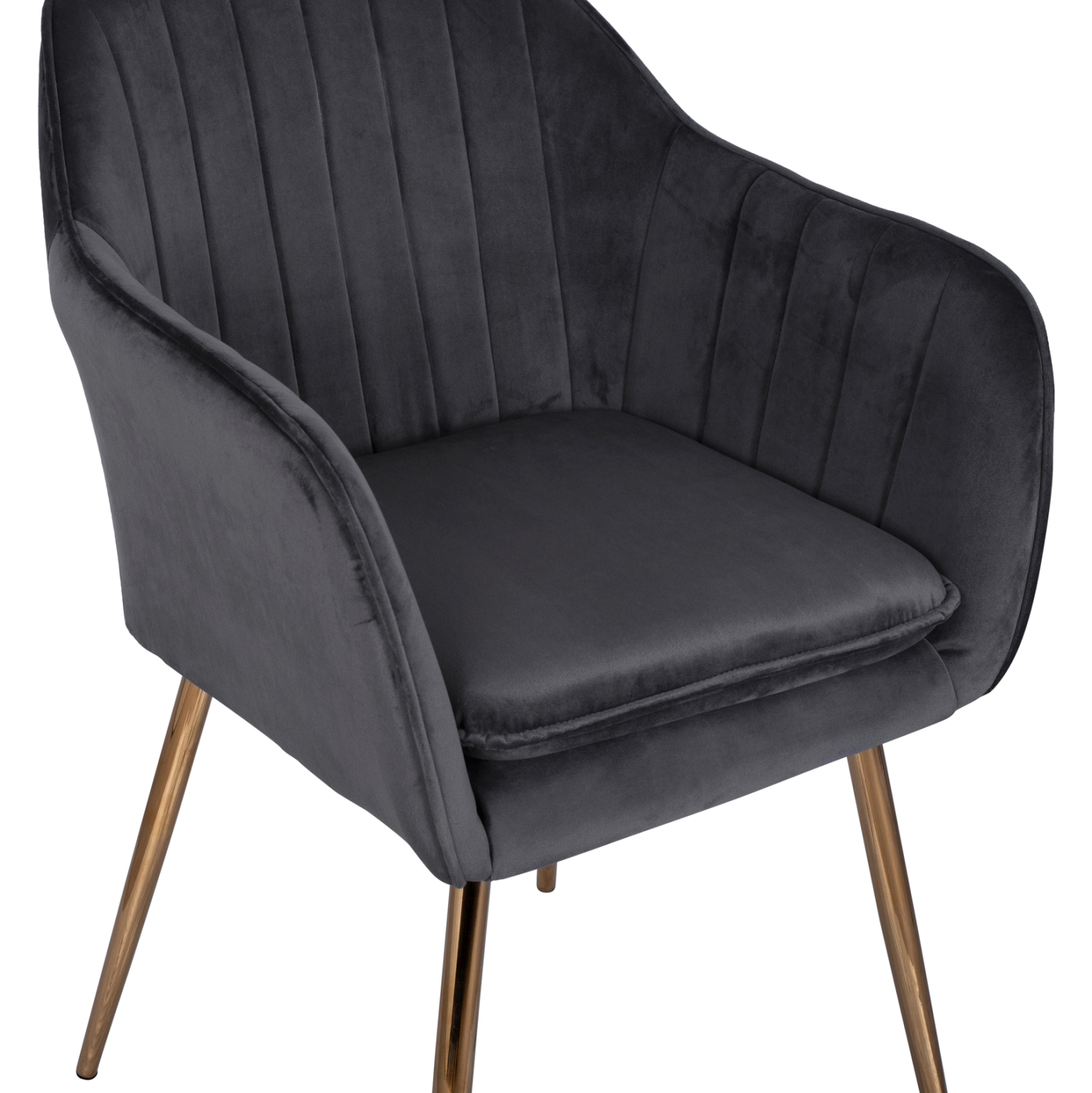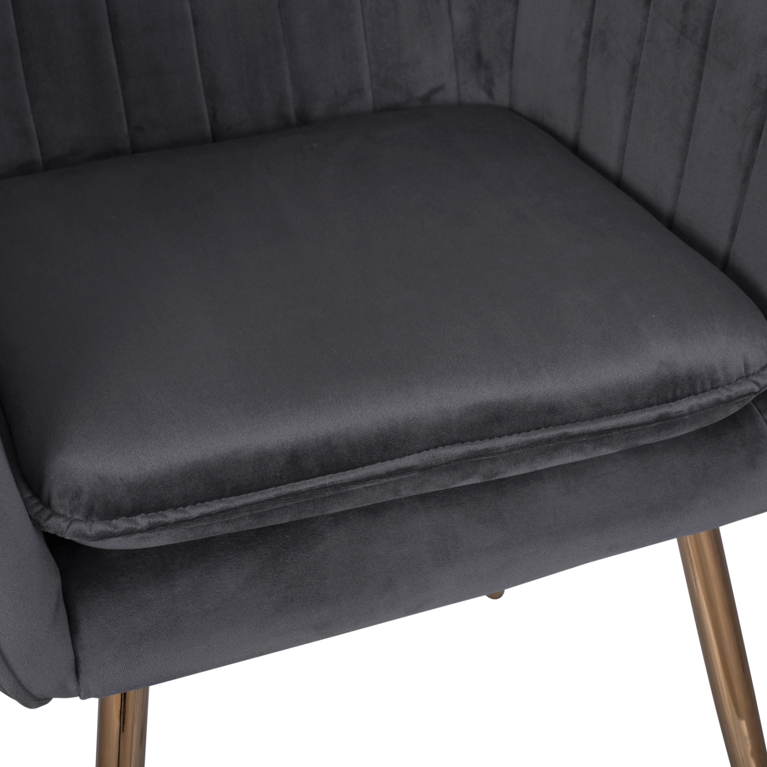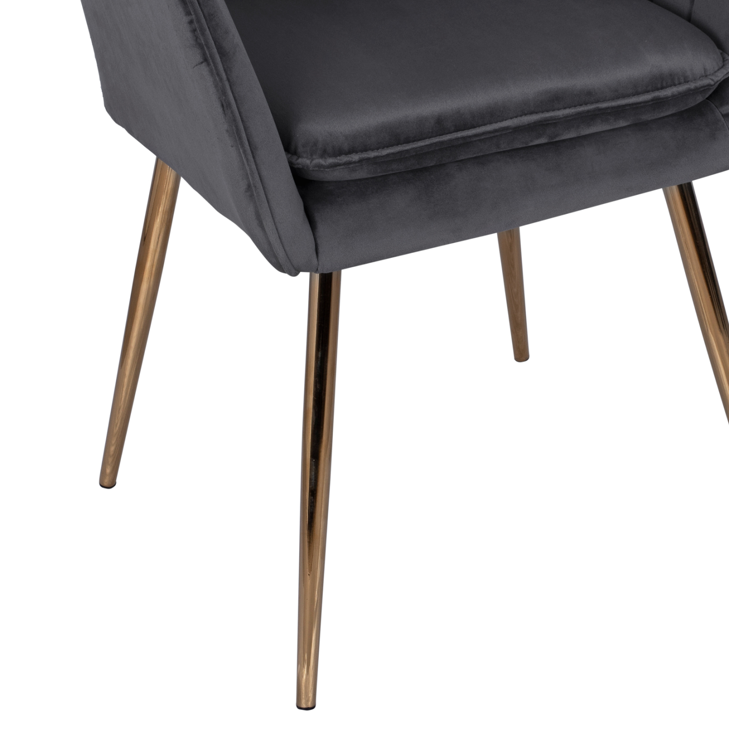 Η πολυθρόνα SAWYER είναι επενδυμένη με ύφασμα βελούδο σε γκρι απόχρωση και μεταλλικό σκελετό σε χρυσή απόχρωση.