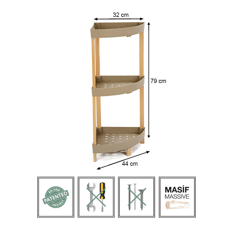 Ραφιέρα δαπέδου γωνιακή πλαστική – ξύλινη χρώμα φυσικό – μπεζ 44x32x79εκ.