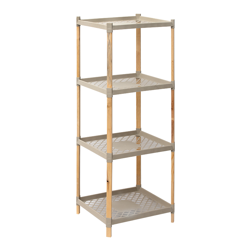 Ραφιέρα δαπέδου πλαστική – ξύλινη χρώμα φυσικό – μπεζ 45x38x112εκ.
