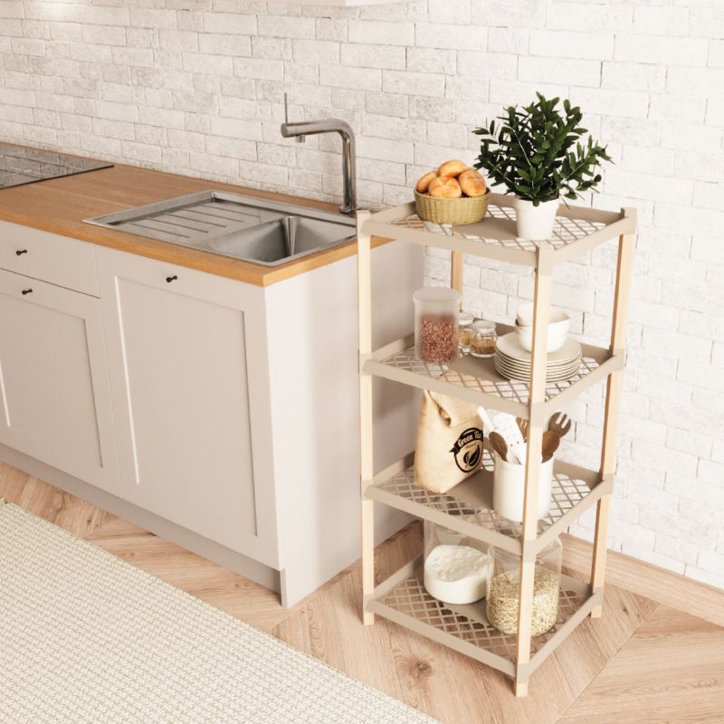Αρχική σελίδα Έπιπλα εσωτερικού χώρου Έπιπλα οργάνωσης σπιτιού Ραφιέρα δαπέδου πλαστική – ξύλινη χρώμα φυσικό – μπεζ 45x38x112εκ.