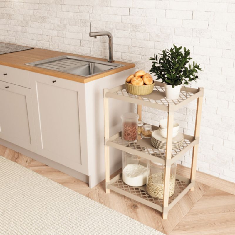 Αρχική σελίδα Έπιπλα εσωτερικού χώρου Έπιπλα οργάνωσης σπιτιού Ραφιέρα δαπέδου πλαστική – ξύλινη χρώμα φυσικό – μπεζ 45x38x79εκ.