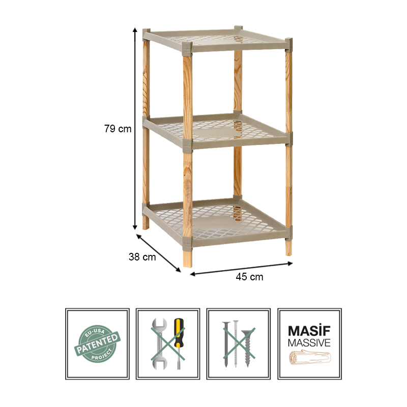 Ραφιέρα δαπέδου πλαστική – ξύλινη χρώμα φυσικό – μπεζ 45x38x79εκ.