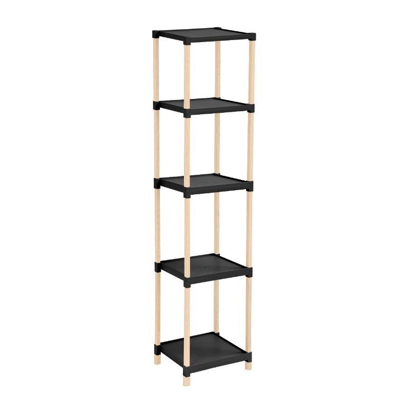 Ραφιέρα δαπέδου πλαστική – ξύλινη χρώμα φυσικό – μαύρο 28x25x137εκ.