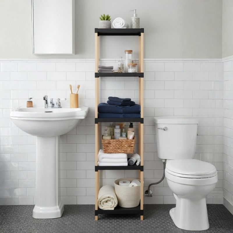 Αρχική σελίδα Έπιπλα εσωτερικού χώρου Έπιπλα οργάνωσης σπιτιού Ραφιέρα δαπέδου πλαστική – ξύλινη χρώμα φυσικό – μαύρο 28x25x137εκ.