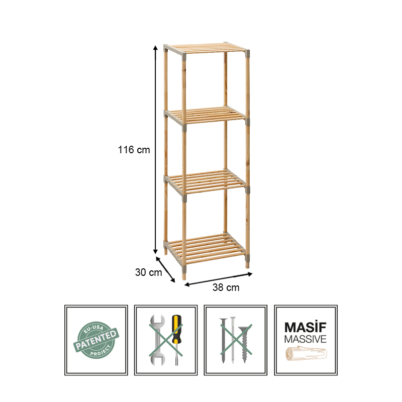 Ραφιέρα δαπέδου ξύλινη-πλαστικό χρώμα φυσικό – μπεζ 38x30x116εκ.