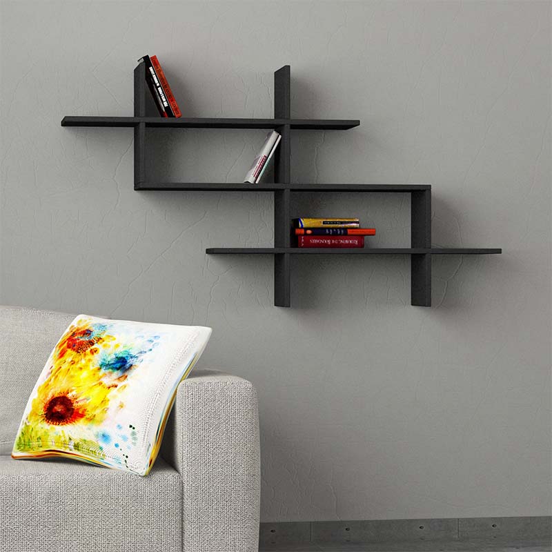 Ραφιέρα τοίχου Halic Megapap μελαμίνης χρώμα ανθρακί 150x22x82εκ.