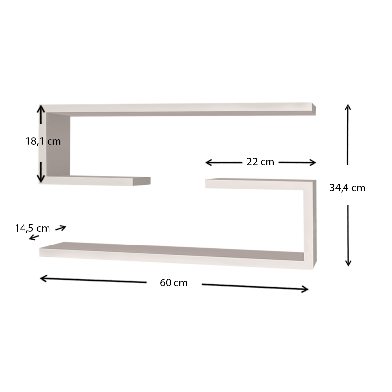 - Διαστάσεις κάθε τεμαχίου: Μήκος 60 x Βάθος 14,5 x Ύψος 18 εκ.