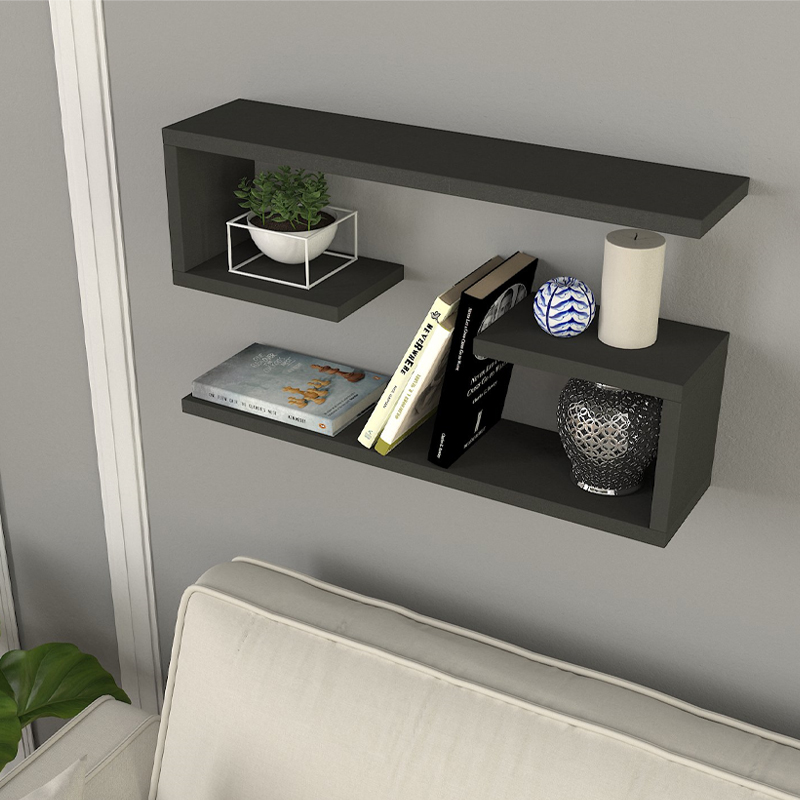 Ραφιέρα τοίχου Jenika Megapap 2 τεμαχίων χρώμα ανθρακί 60×14,5×18εκ.