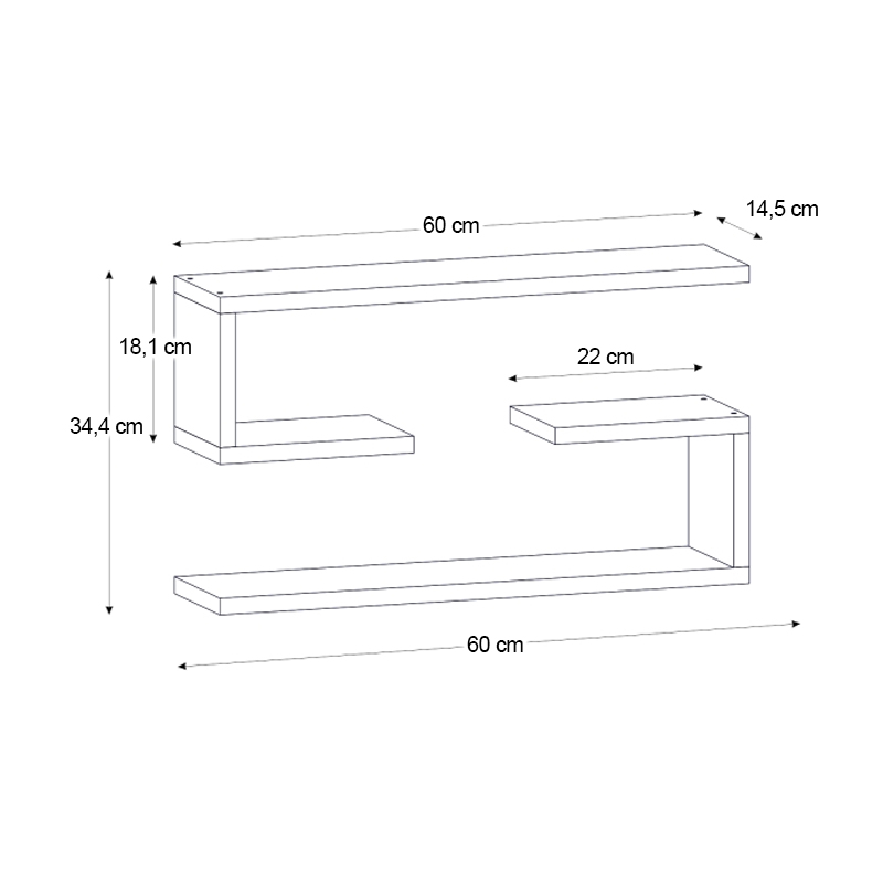 • Διαστάσεις κάθε τεμαχίου: Μήκος 60 x Βάθος 14,5 x Ύψος 18 εκ.