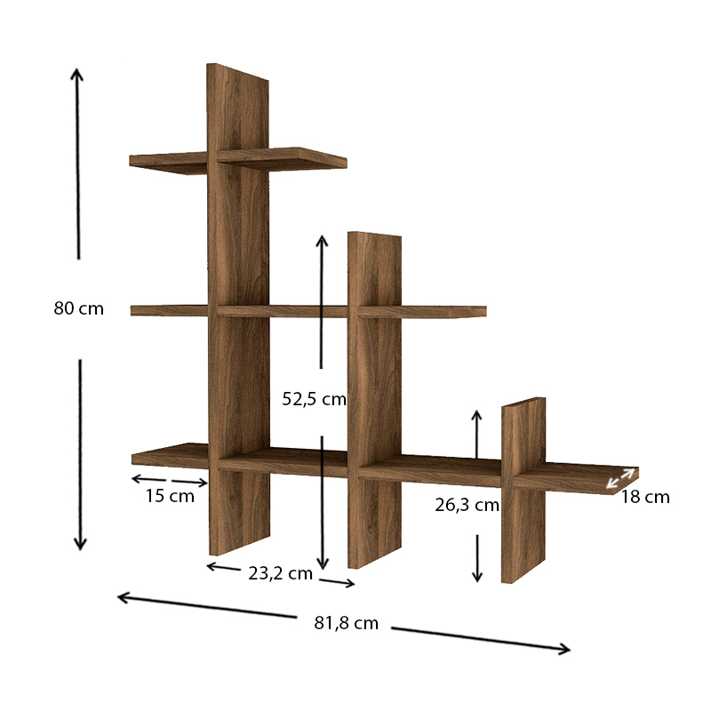 Ραφιέρα τοίχου Juke Megapap από μελαμίνη χρώμα καρυδί 81,8x18x80εκ.