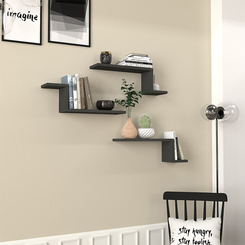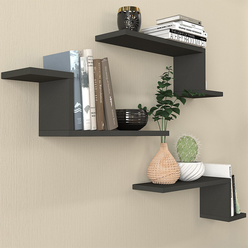 Ραφιέρα τοίχου Lowa Megapap 3 τεμαχίων χρώμα ανθρακί 57,7×14,5×18εκ.