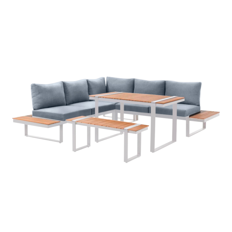 Σαλόνι κήπου γωνιακό Artemis Megapap σετ 4 τμχ μέταλλο – ξύλο χρώμα λευκό – καρυδί