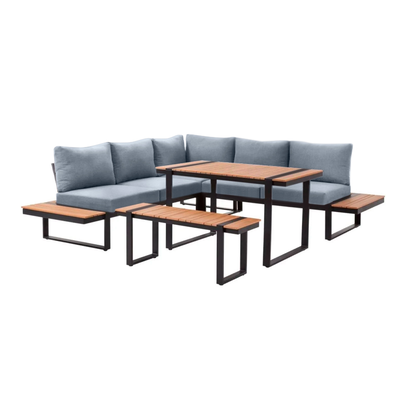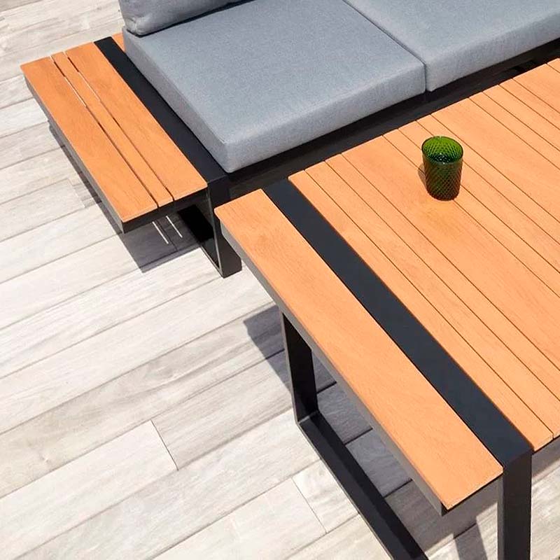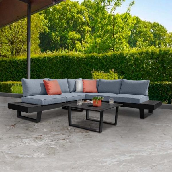 Σαλόνι κήπου γωνιακό Artemis Megapap σετ 4 τμχ μέταλλο – ξύλο χρώμα μαύρο – καρυδί