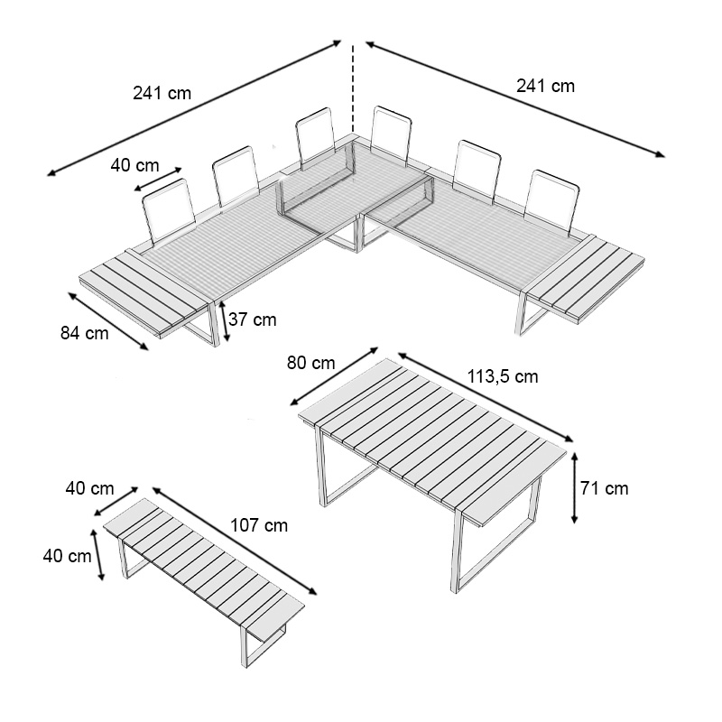 - Παγκάκι: Μήκος 107 x Βάθος 40 x Ύψος 40 εκ.
