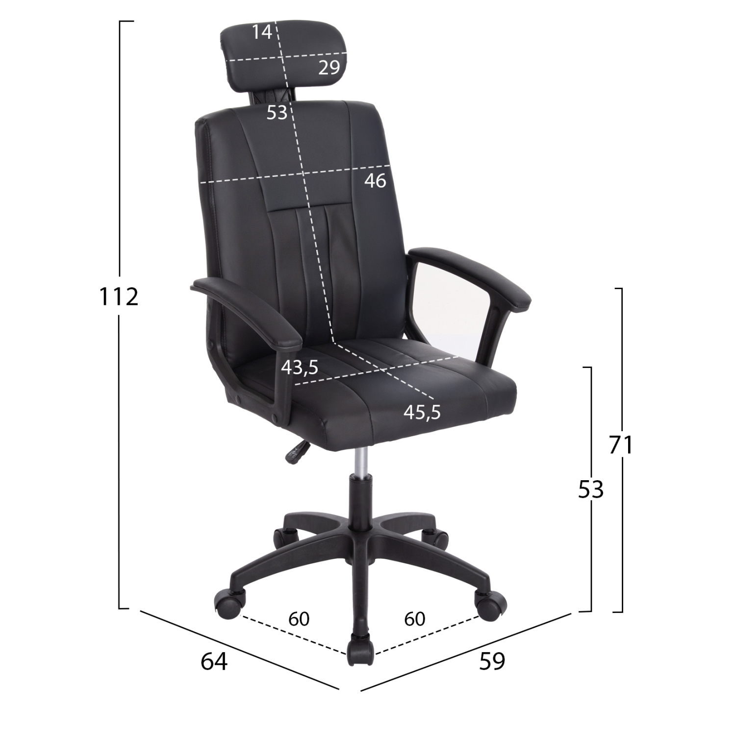 Καρέκλα γραφείου με μαύρο PVC δέρμα & σκελετό nylon—
