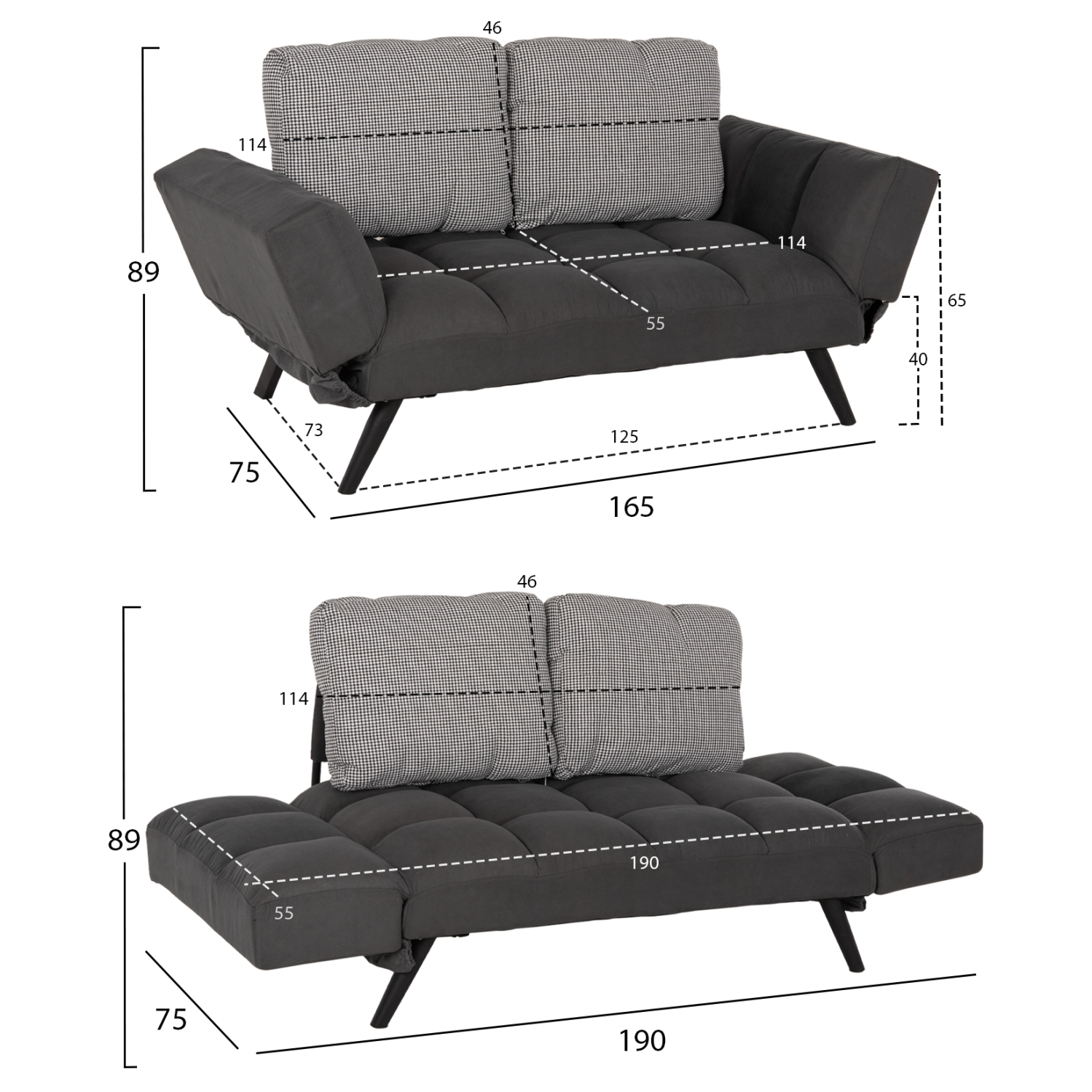 3θέσιος καναπές πολυμορφικός με γκρι ύφασμα που γίνεται κρεβάτι όταν «πέφτουν» τα μπράτσα. Διαστάσεις: 190x75x89Y εκ.