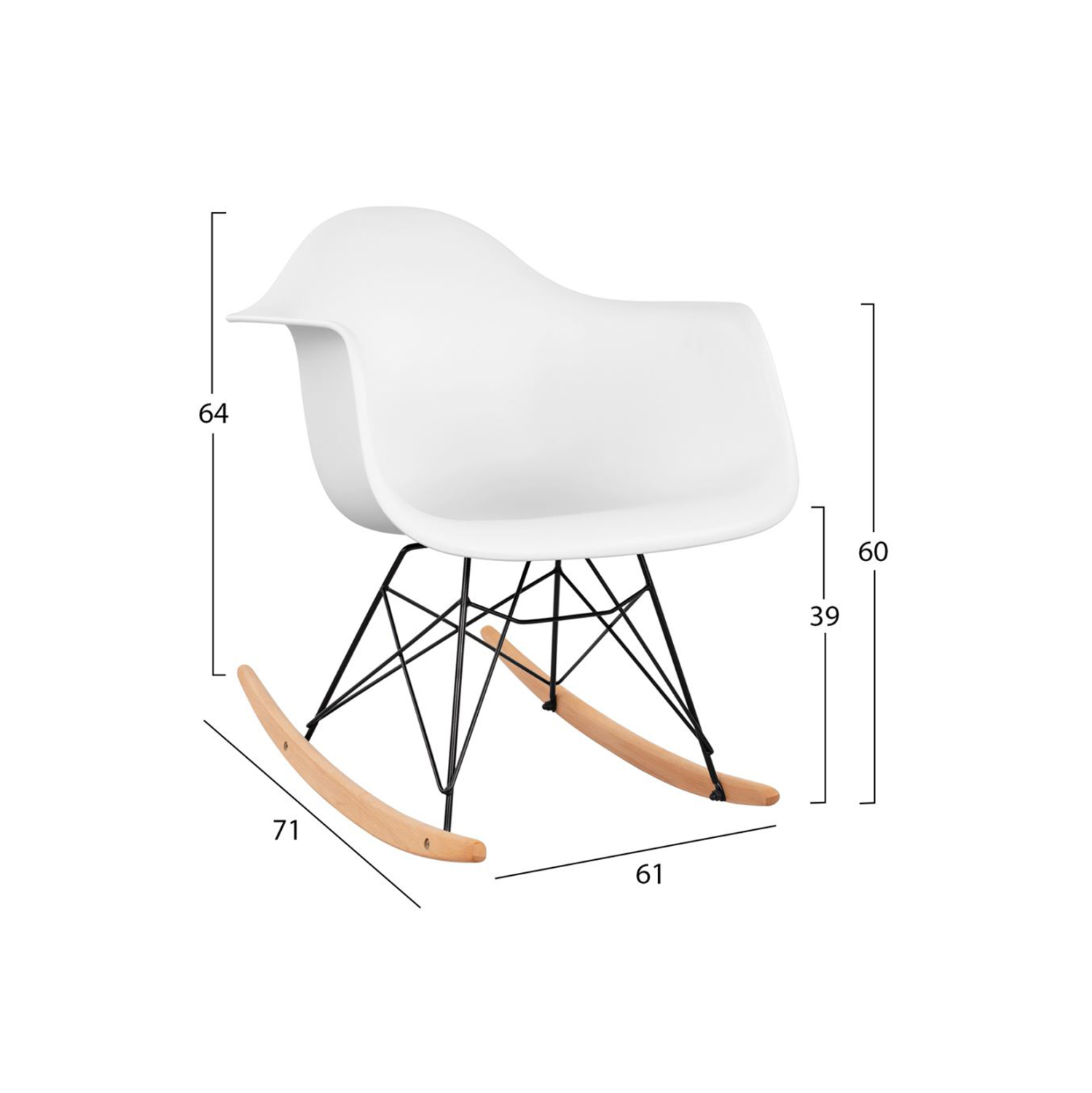 Κουνιστή πολυθρόνα σε συνδυασμό ξύλου-μετάλλου-πολυπροπυλενίου σε χρώματα λευκό-μαύρο. Διαστάσεις: 61x71x64Υ εκ.
