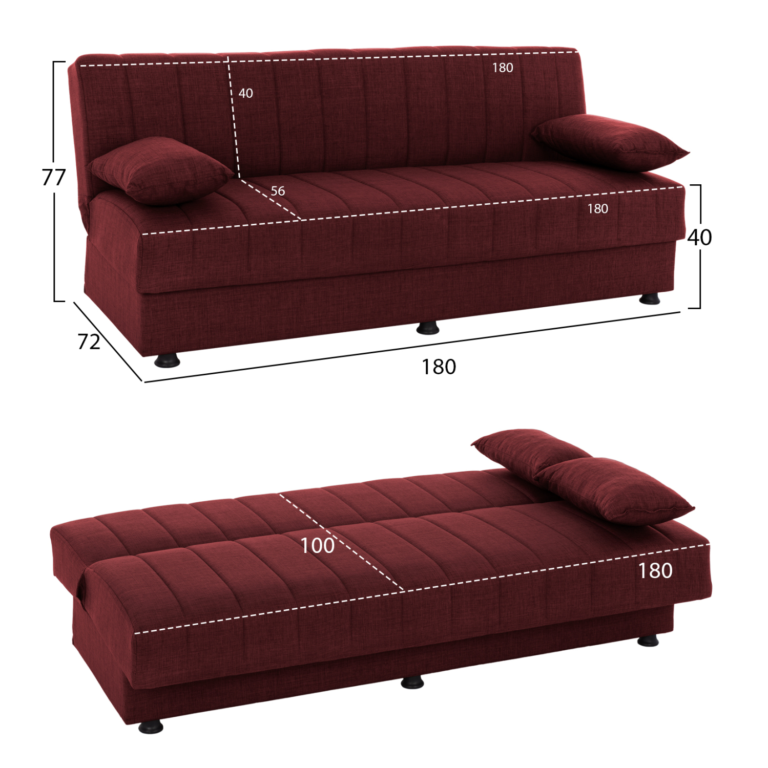 HM3239.06–Καναπές κρεβάτι με αποθηκευτικό χώρο με ύφασμα σε κόκκινο χρώμα.