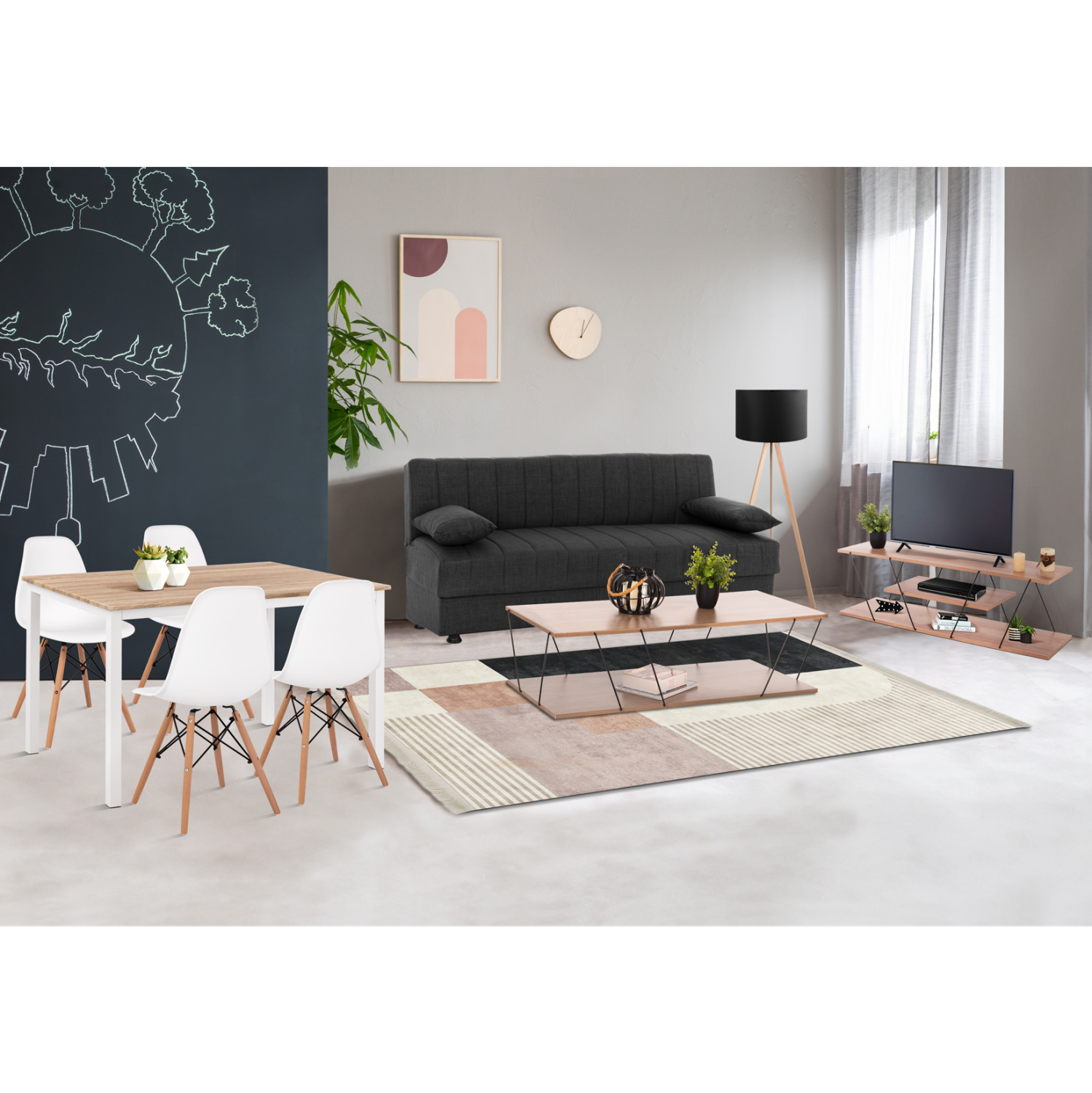 Αυτό το σετ περιλαμβάνει καναπέ, τραπέζι σαλονιού, έπιπλο TV, τραπέζι κουζίνας, και καρέκλα τραπεζαρίας.