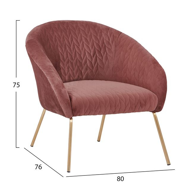 Σετ σαλόνι 2 τεμαχίων JOYTE, κατασκευασμένο από βελούδο σε απόχρωση σάπιου μήλου και μεταλλικά πόδια σε χρυσή απόχρωση.