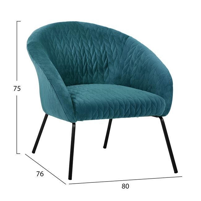 Σετ σαλόνι 2 τεμαχίων JOYTE, κατασκευασμένο από τιρκουάζ βελούδο και μεταλλικά πόδια σε μαύρη απόχρωση.
