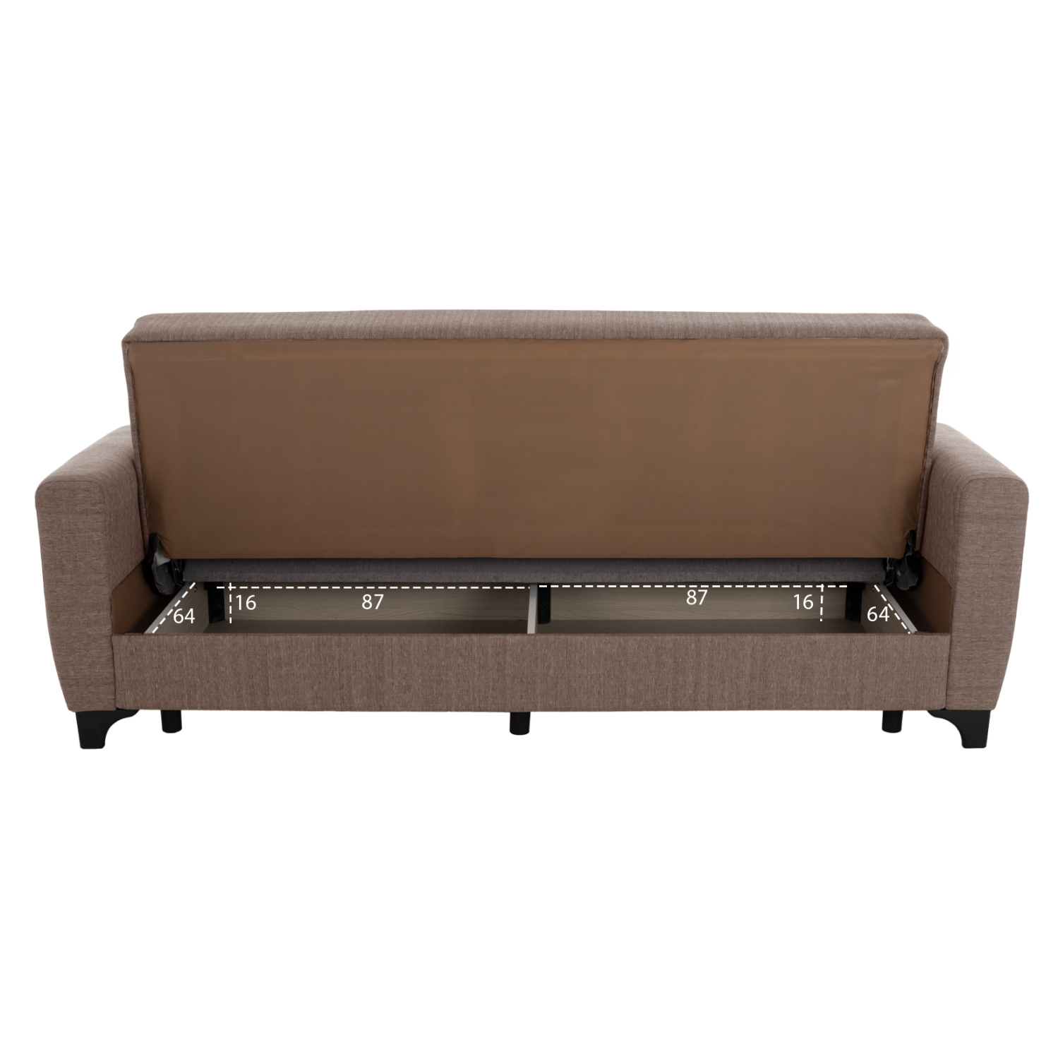 Το κύριο χαρακτηριστικό των καναπέδων, όμως, είναι ότι πέφτει η ψηλή πλάτη και μετατρέπονται σε ένα ακόμα πιο άνετο και μεγάλο κρεβάτι με έναν εύχρηστο μηχανισμό «κλικ-κλακ». Και για να μην υπάρξει ποτέ κανένα πρόβλημα με τους καναπέδες, υπάρχουν επιπλέον πόδια που χρησιμεύουν όταν γίνονται κρεβάτι! Συνέπεια αυτού, βέβαια, είναι και η ύπαρξη δύο αποθηκευτικών χώρων κάτω από το κάθισμά τους, οι οποίοι πάντα είναι χρήσιμοι, ειδικά σε φοιτητικά σπίτια. Τέλος, τα πόδια τους σε μαύρο χρώμα, είναι ψηλά επιτρέποντας το εύκολο καθάρισμα χωρίς να χρειαστεί να τους μετακινήσετε.