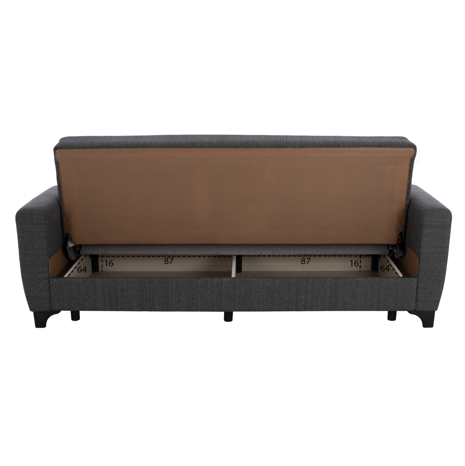 Το κύριο χαρακτηριστικό των καναπέδων, όμως, είναι ότι πέφτει η ψηλή πλάτη και μετατρέπονται σε ένα ακόμα πιο άνετο και μεγάλο κρεβάτι με έναν εύχρηστο μηχανισμό «κλικ-κλακ». Και για να μην υπάρξει ποτέ κανένα πρόβλημα με τους καναπέδες, υπάρχουν επιπλέον πόδια που χρησιμεύουν όταν γίνονται κρεβάτι! Συνέπεια αυτού, βέβαια, είναι και η ύπαρξη δύο αποθηκευτικών χώρων κάτω από το κάθισμά τους, οι οποίοι πάντα είναι χρήσιμοι, ειδικά σε φοιτητικά σπίτια. Τέλος, τα πόδια τους σε μαύρο χρώμα, είναι ψηλά επιτρέποντας το εύκολο καθάρισμα χωρίς να χρειαστεί να τους μετακινήσετε.