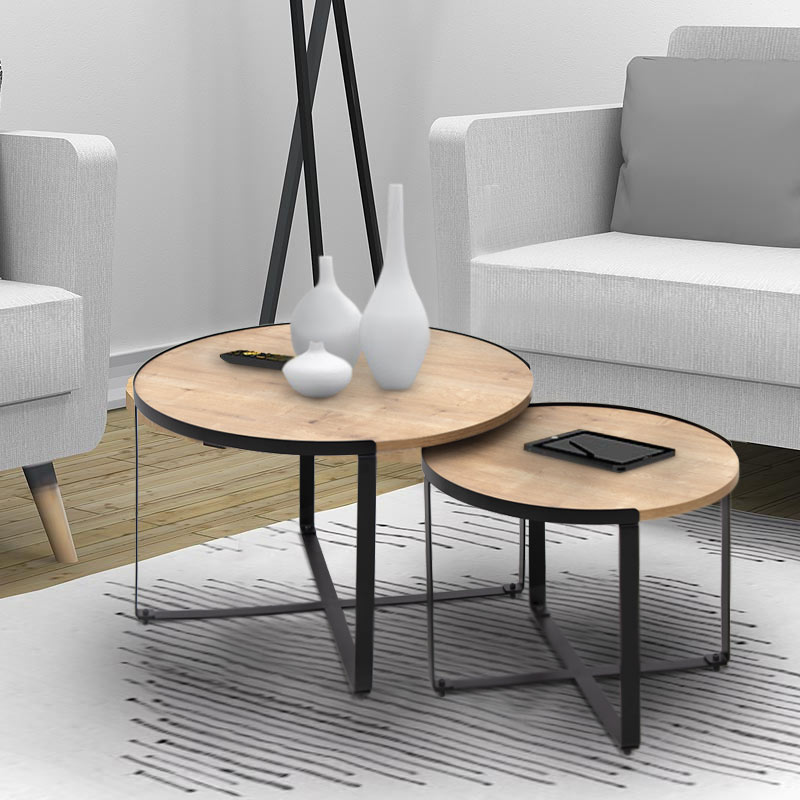 Σετ τραπεζάκια σαλονιού Davis Megapap 2τμχ. μεταλλικά – μελαμίνης σε φυσικό οξιάς 70x69x46εκ.