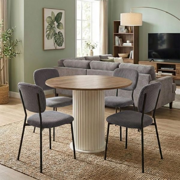 Σετ τραπεζαρία 5τμχ Bohema – Rosa Megapap χρώμα ivory/sepet oak – μαύρο Ø90×77,7εκ.