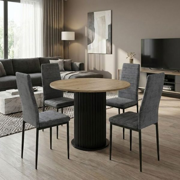 Σετ τραπεζαρία 5τμχ Bohema - Rosa Megapap χρώμα μαύρο/sepet oak - γκρι Ø90x77,7εκ. €257.00 Original price was: €257.00.€208.60Η τρέχουσα τιμή είναι: €208.60.