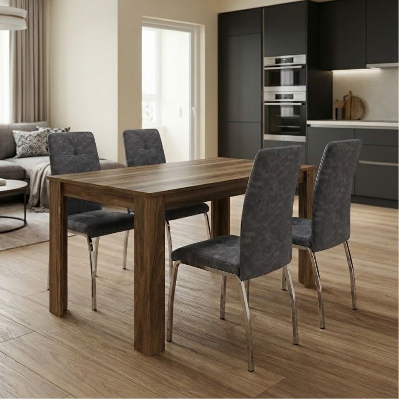 Αρχική σελίδα Έπιπλα εσωτερικού χώρου Σετ τραπεζαρίες Σετ τραπεζαρία 5τμχ Darlen – Alma Megapap χρώμα καρυδί – γκρι 125x72x74εκ.
