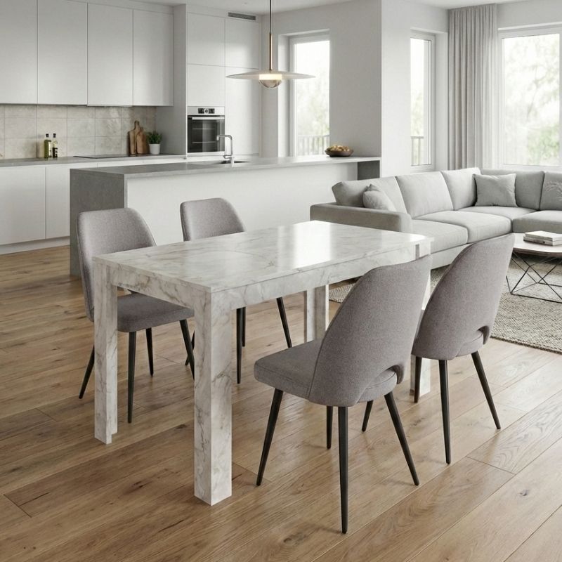 Σετ τραπεζαρία 5τμχ Darlen – Christy Megapap χρώμα λευκό εφέ μαρμάρου – ανοιχτό μπεζ 125x72x74εκ.
