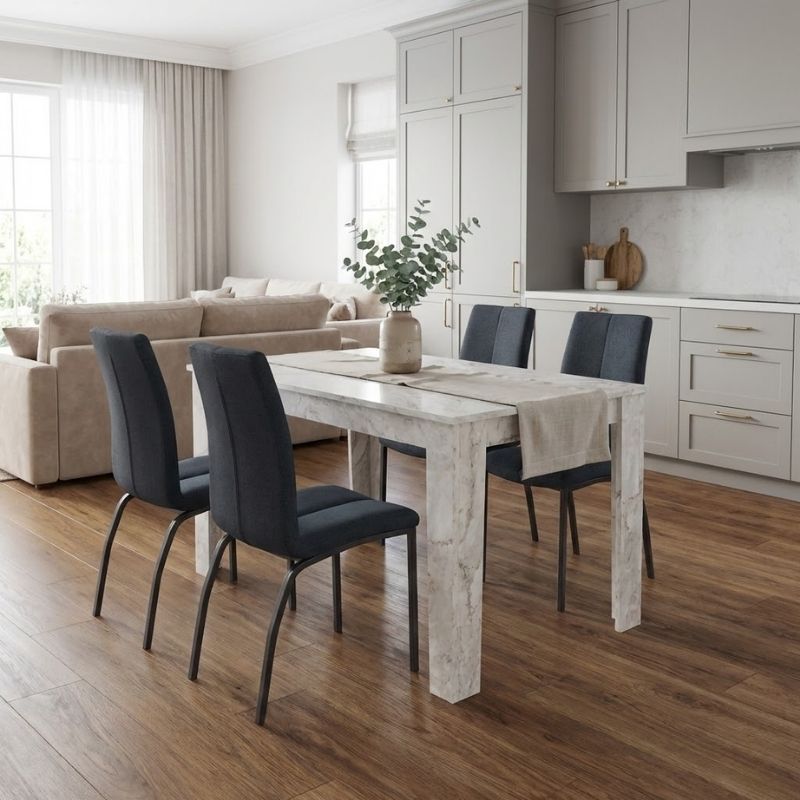 Η τραπεζαρία Darlen – Fina θα προσθέσει σύγχρονη κομψότητα και απόλυτη λειτουργικότητα στον χώρο σας. Ιδανική για την τραπεζαρία του σπιτιού, αλλά και για επαγγελματικούς χώρους όπως καφέ, εστιατόρια ή AirBnB, όπου η προσεγμένη αισθητική κάνει τη διαφορά.