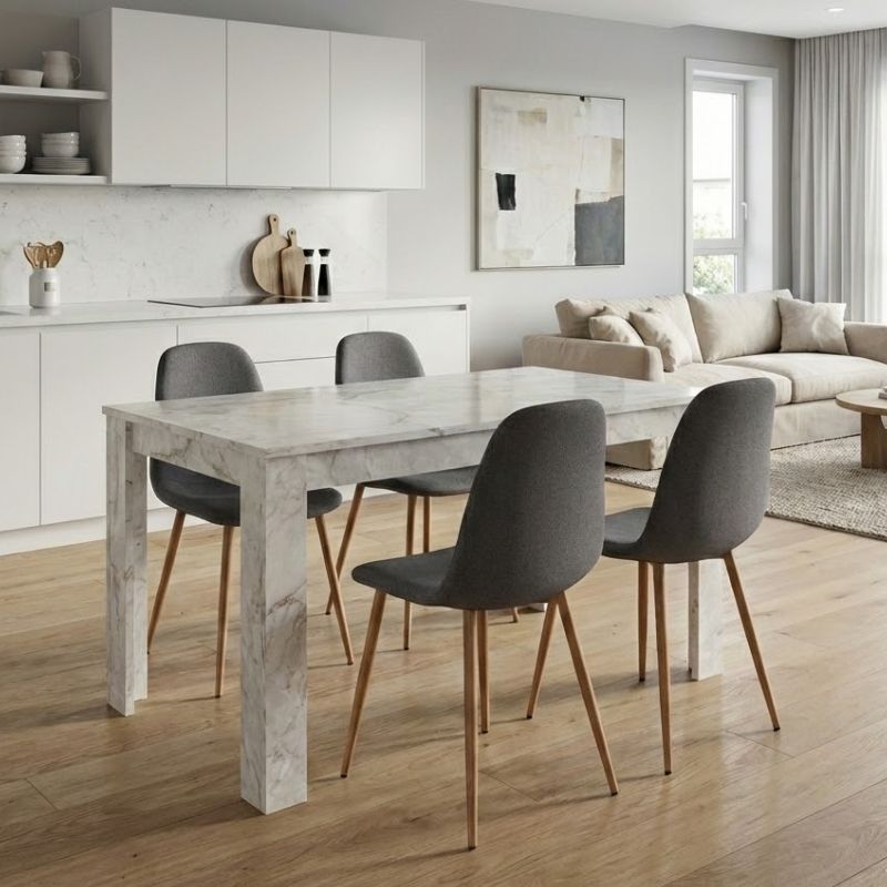 Σετ τραπεζαρία 5τμχ Darlen – Iris Megapap χρώμα λευκό εφέ μαρμάρου – γκρι/φυσικό πόδι 125x72x74εκ.