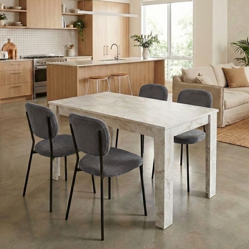 Σετ τραπεζαρία 5τμχ Darlen – Kevin Megapap χρώμα λευκό εφέ μαρμάρου – γκρι 125x72x74εκ.