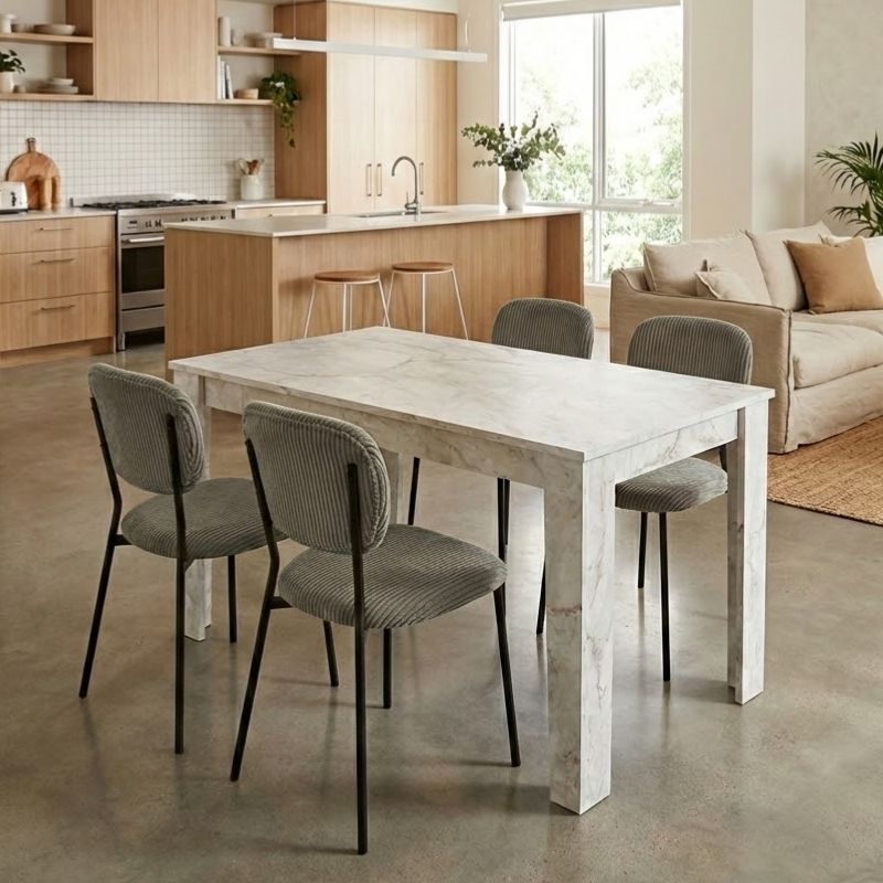 Η τραπεζαρία Darlen – Kevin θα φέρει μία αίσθηση εκλεπτυσμένης κομψότητας στον χώρο σας. Το πλούσιο κοτλέ ύφασμα της καρέκλας χαρίζει ζεστασιά και υφή, ενώ τα μαύρα μεταλλικά πόδια προσδίδουν μοντέρνο χαρακτήρα και σταθερότητα. Ιδανική επιλογή τόσο για το σπίτι όσο και για επαγγελματικούς χώρους που θέλουν να επικοινωνήσουν ποιότητα και design σε κάθε λεπτομέρεια.