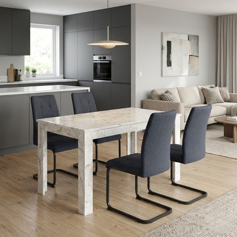 Σετ τραπεζαρία 5τμχ Darlen – Laura Megapap χρώμα λευκό εφέ μαρμάρου – ανθρακί 125x72x74εκ.