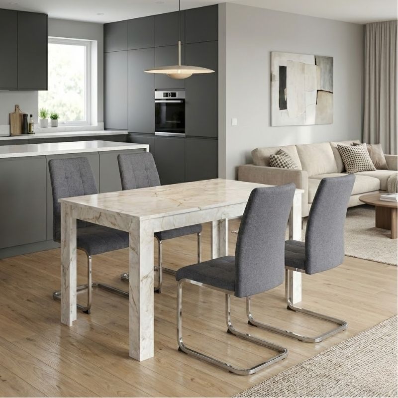 Σετ τραπεζαρία 5τμχ Darlen – Laura Megapap χρώμα λευκό εφέ μαρμάρου – γκρι 125x72x74εκ.